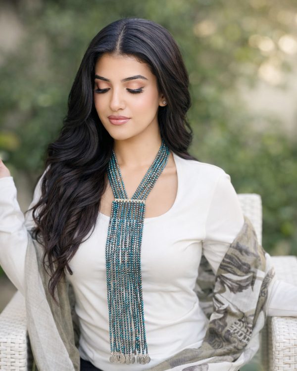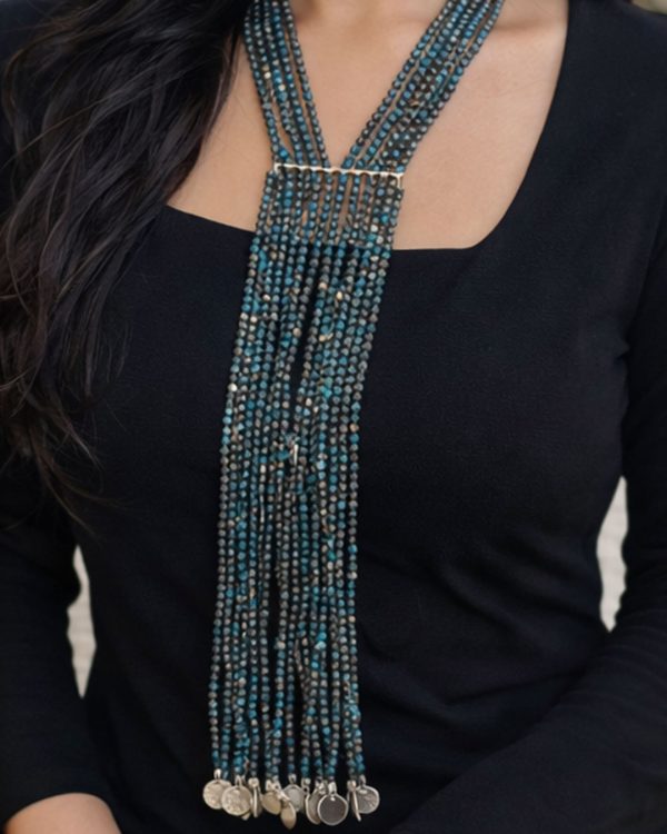 Designed to move as you move, Indigo Flow is a statement of rhythm, intuition, and presence. Handcrafted with cascading strands of natural Chrysocolla Azurite, the necklace drapes the body in deep indigo and oceanic tones, creating a powerful sense of flow and elegance.
