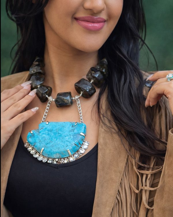 At its center, a vivid turquoise stone emerges like a guiding force—raw, luminous, and entirely unique. The contrast between dark coral depth and vibrant turquoise clarity reflects the essence of the nomad spirit: movement balanced by purpose, freedom anchored by identity.